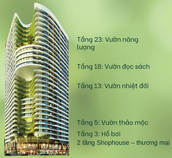 - Quy mô: 5.361m², 490 căn hộ, 8 căn Shophouse, 6 căn Penhouse